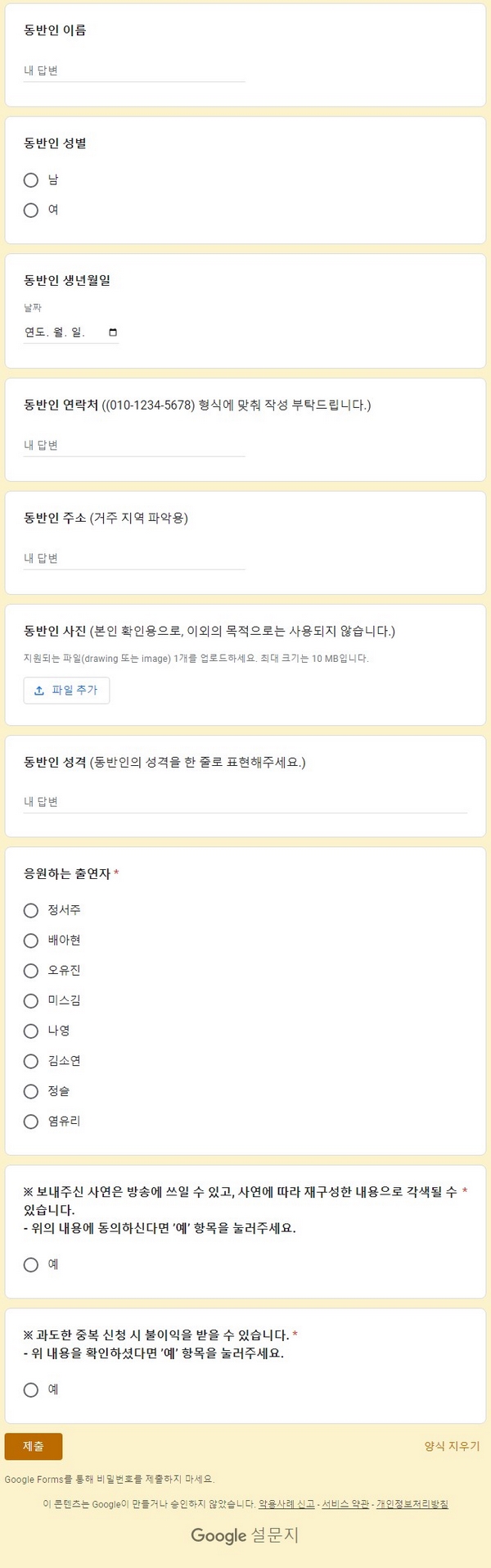 - 동반자가 있을 시, 동반자도 정확하게 작성해주세요.
