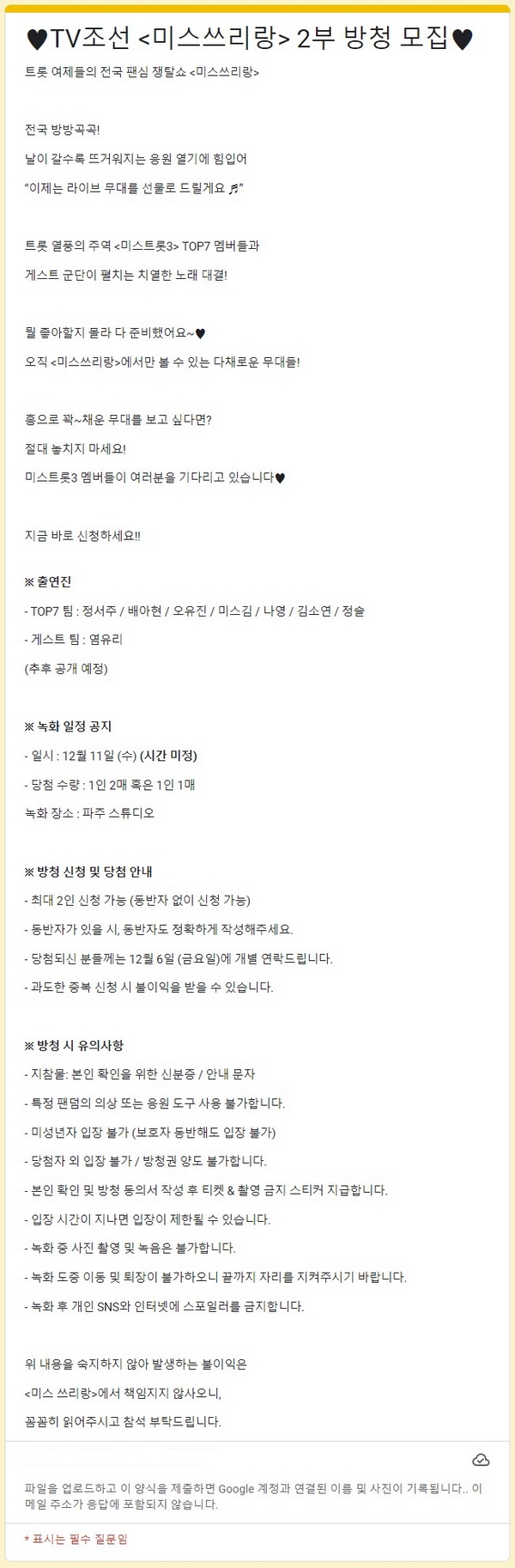 TV조선 <미스쓰리랑> 방청단 모집 ♬ (2부)