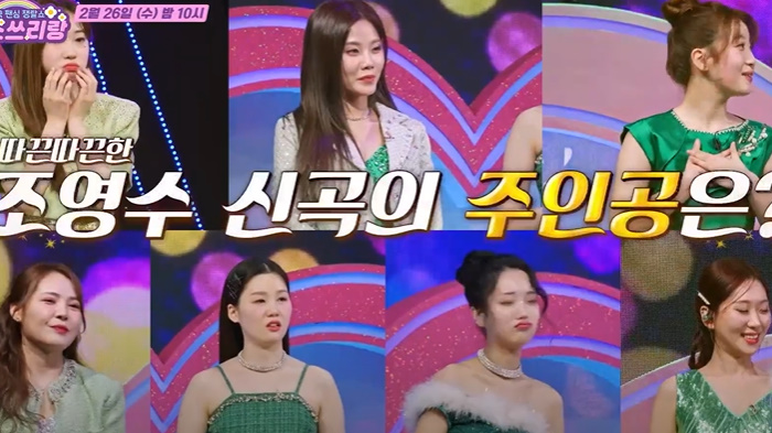 2월 26일 방송되는 TV CHOSUN '미스쓰리랑' 42회는 천재 작곡가 조영수와 함께하는 '신곡 쟁탈전' 특집으로 꾸며집니다. 이에 '조영수 사단'의 홍진영, 양지은, SG워너비 김용준, 마이트로 한태이X쇼헤이X임채평이 총출동해 TOP7과 한 치의 양보 없는 노래 대결에 나섭니다.