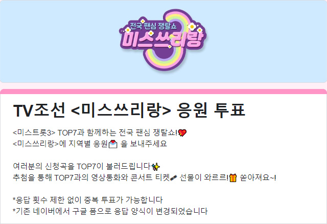 미스쓰리랑 응원투표 하러 가기 |