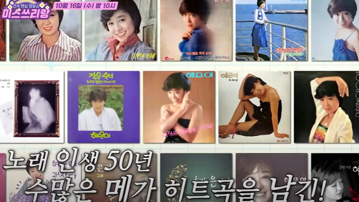 가요계 한 획을 그은 레전드원조 국민 요정 혜은이가 떴다!전국 팬심 쟁탈쇼, 미스쓰리랑10월 16일 (수) 밤 10시 방송